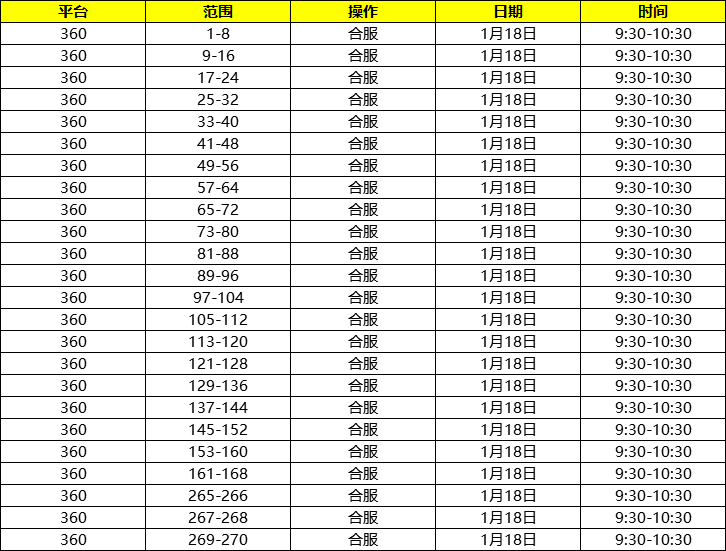 参加区服:所有进行合服的服务器。